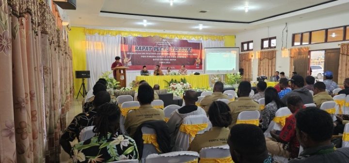 Rapat yang berlangsung di Aula Dinas Pendidikan Kabupaten Mappi itu dihadiri Asisten I Setda Mauridsius Kabagaimu, Kapolres AKBP Yustinus S S Kadang, unsur Kodim 1707, Komisioner Bawaslu, Kadis Capil, Kesbangpol, perwakilan partai politik, gabungan partai pengusung, dan penghubung atau LO bakal pasangan calon bupati dan wakil bupati