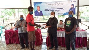 Anggota DPR RI menyerahkan bantuan kepada kelompok mahuze mandiri